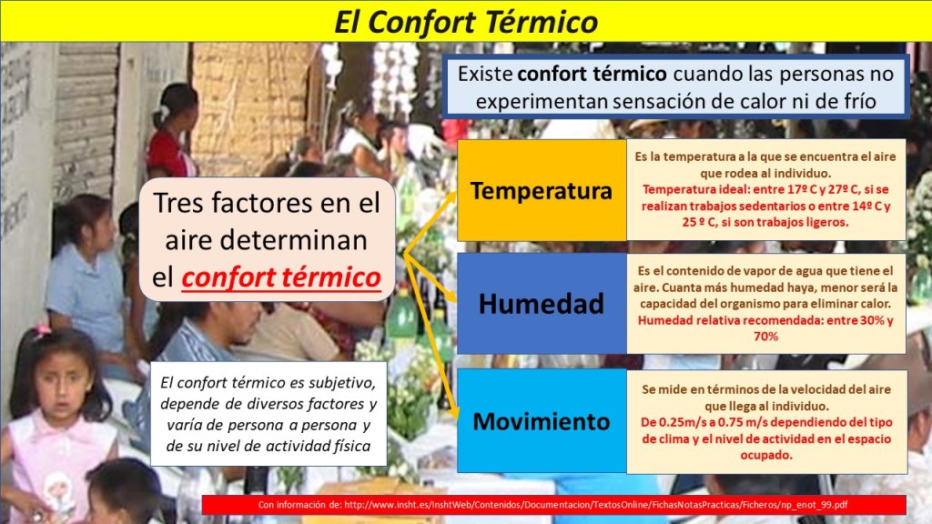 Hay que recordar que son varios los factores y condiciones que determinan si el aire interior de una vivienda tiene condiciones que dan lugar al confort térmico y a la salud de sus ocupantes. Sin considerar la contaminación ambiental, que es un factor relevante, son tres las variables más importantes que determinan los niveles de confort de una persona respecto de su ambiente inmediato: la temperatura del aire, la humedad relativa y el movimiento del aire.[9]